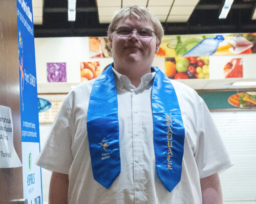 After moving to the Rhinelander area, Wyatt faced challenges finding employment and becoming involved in the community. Through an internship with Project SEARCH at Asprius Rhinelander Hospital, he developed essential job skills, improved communication, and gained confidence both professionally and socially. The program helped Wyatt establish daily routines, build meaningful relationships, and feel a sense of belonging in his new community.