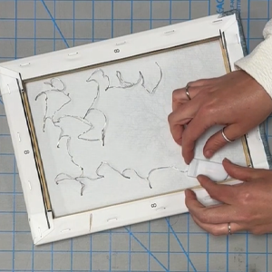 Once the bulbs are in place, use tape to hold the string of lights along the back of the canvas. Make sure the battery pack is positioned near the edge so you can easily switch it on and off.