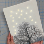 Decide where you’d like the lights to shine through. You might want to light up stars, street lamps, windows or just add sparkle across the canvas. Lightly mark those spots on the back of the canvas with a pencil.