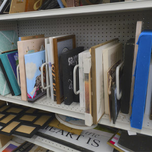 Head to your local Goodwill NCW and browse the art section. The image on the canvas does not matter since it will be completely covered. Focus on the size, shape, and condition of the frame so it fits your space.